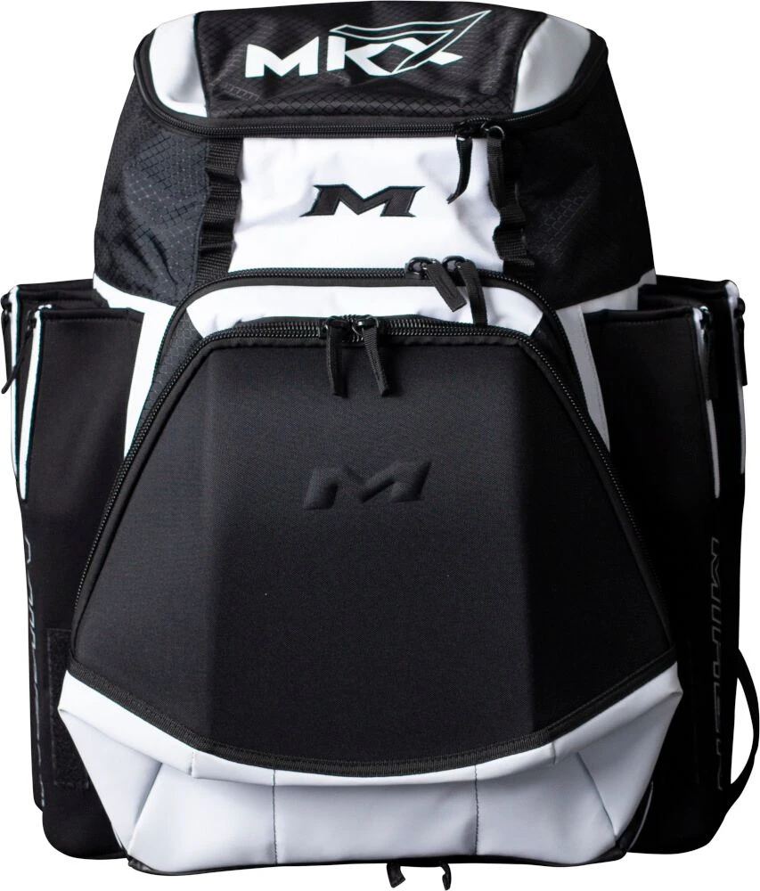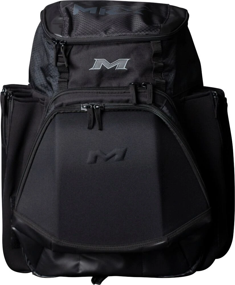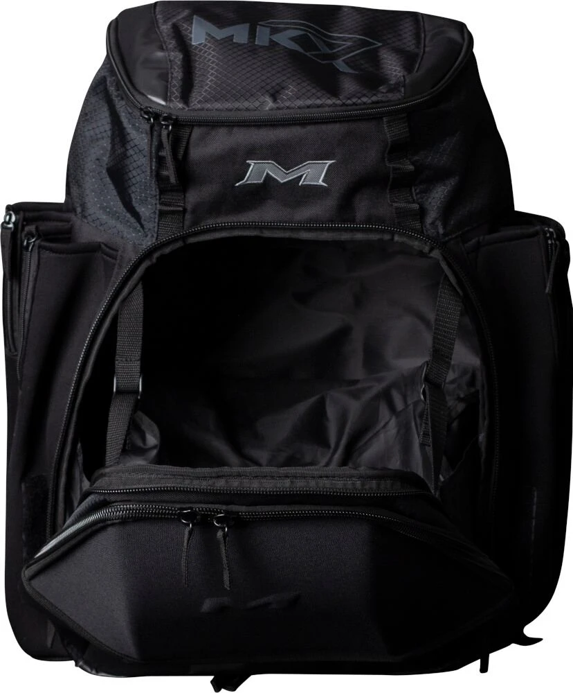 The all new Miken XL Backpack features: 4 zippered neoprene bat